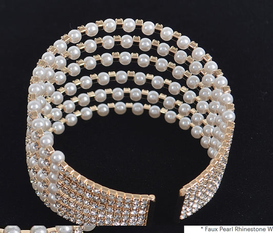 Faux Pearl Rhinestone Wrap Bangle