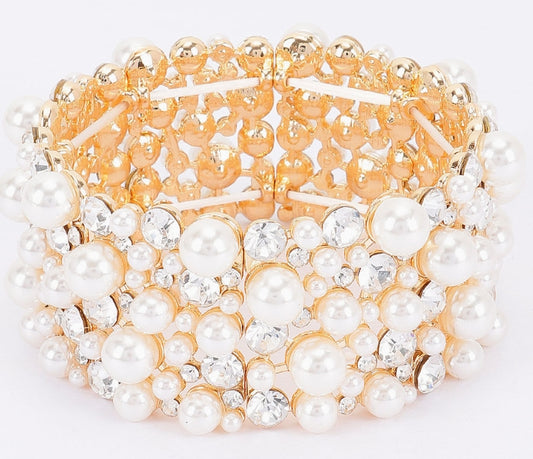 Faux Pearl Rhinestone Stretch Bracelet