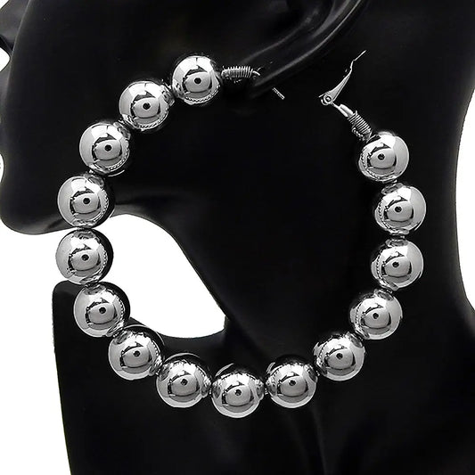 80mm Polished Ball Chunky Hoop Earrings