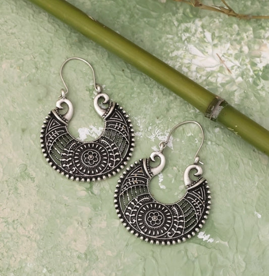 Antique Silver Plated Fligree Oval Circle Earrings