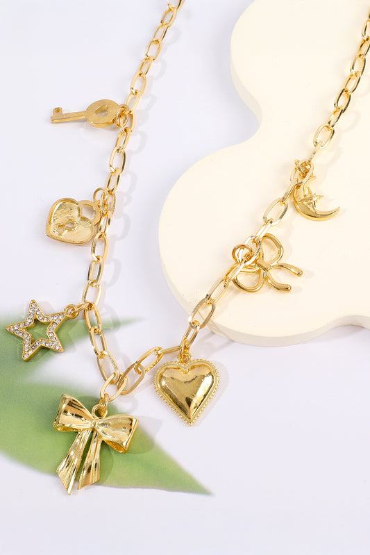 Gold Heart Pendant Pearl Chain Multi Layer Necklace