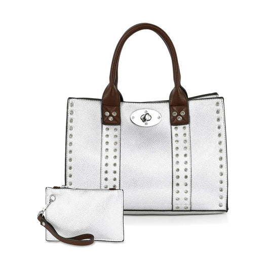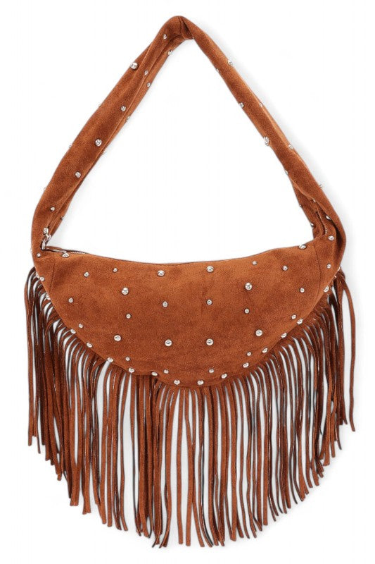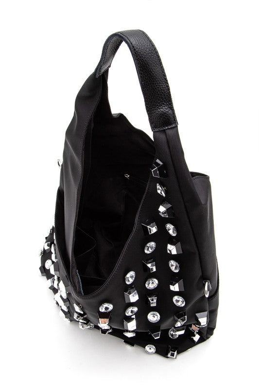 Crystal Studs Embellished Top Handle Shoulder Bag