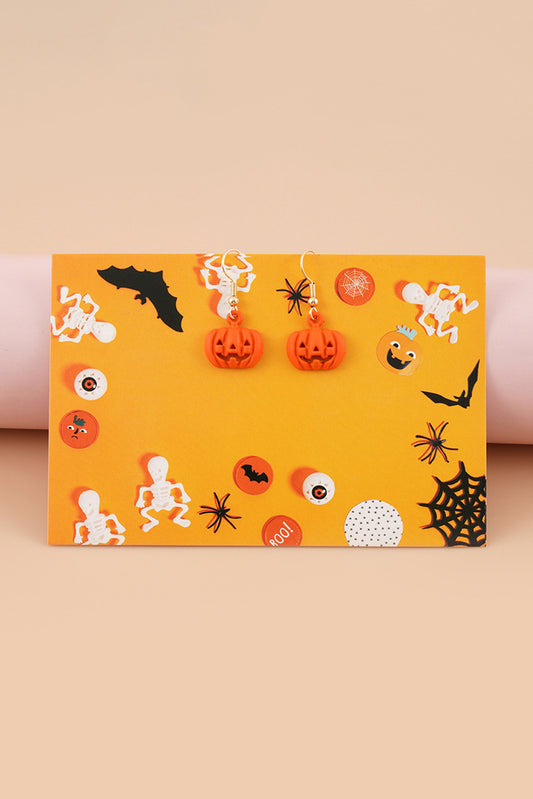 Orange Halloween Pumpkin Pendant Hook Earrings