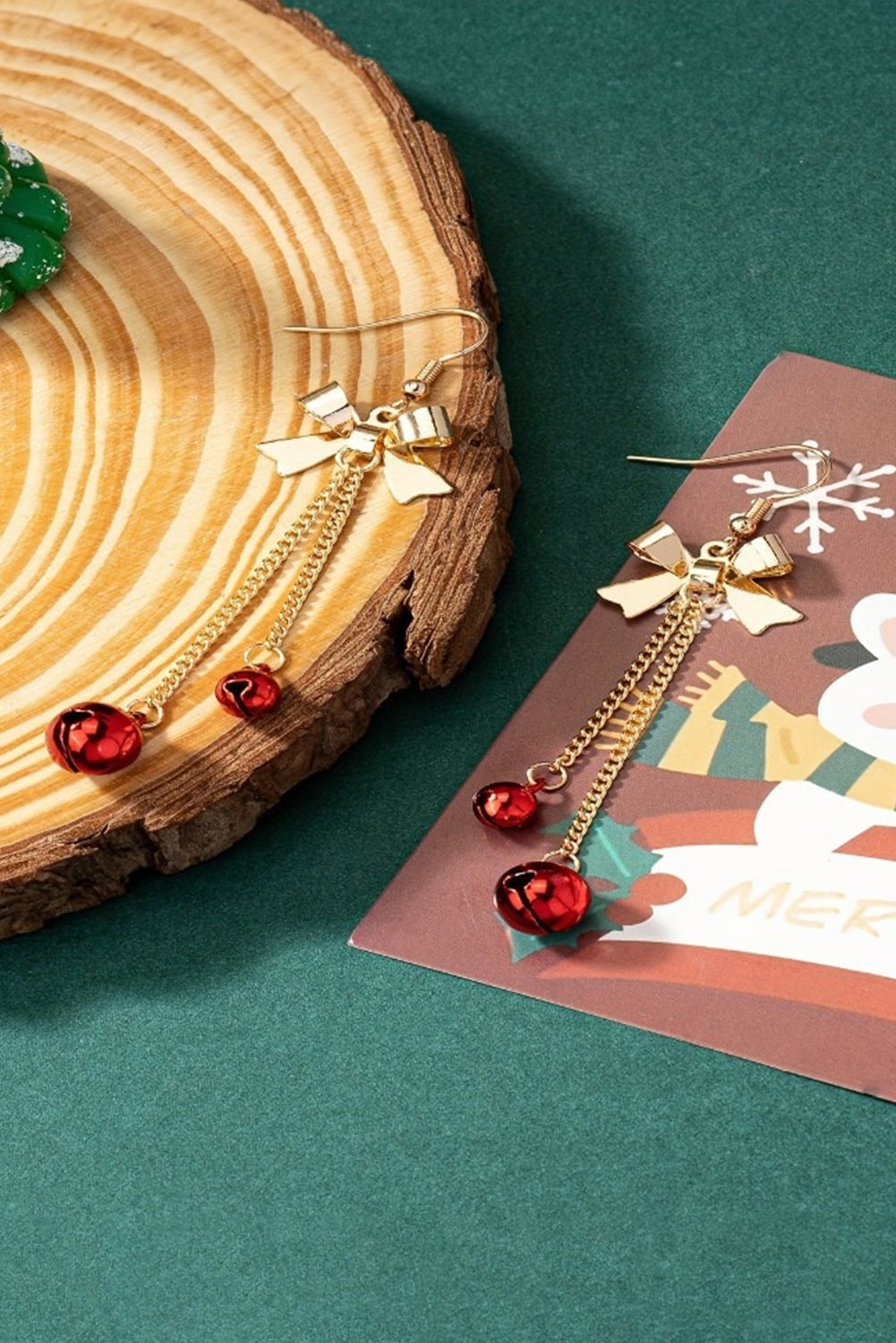 Fiery Red Bow Christmas Jingle Bell Dangle Earring